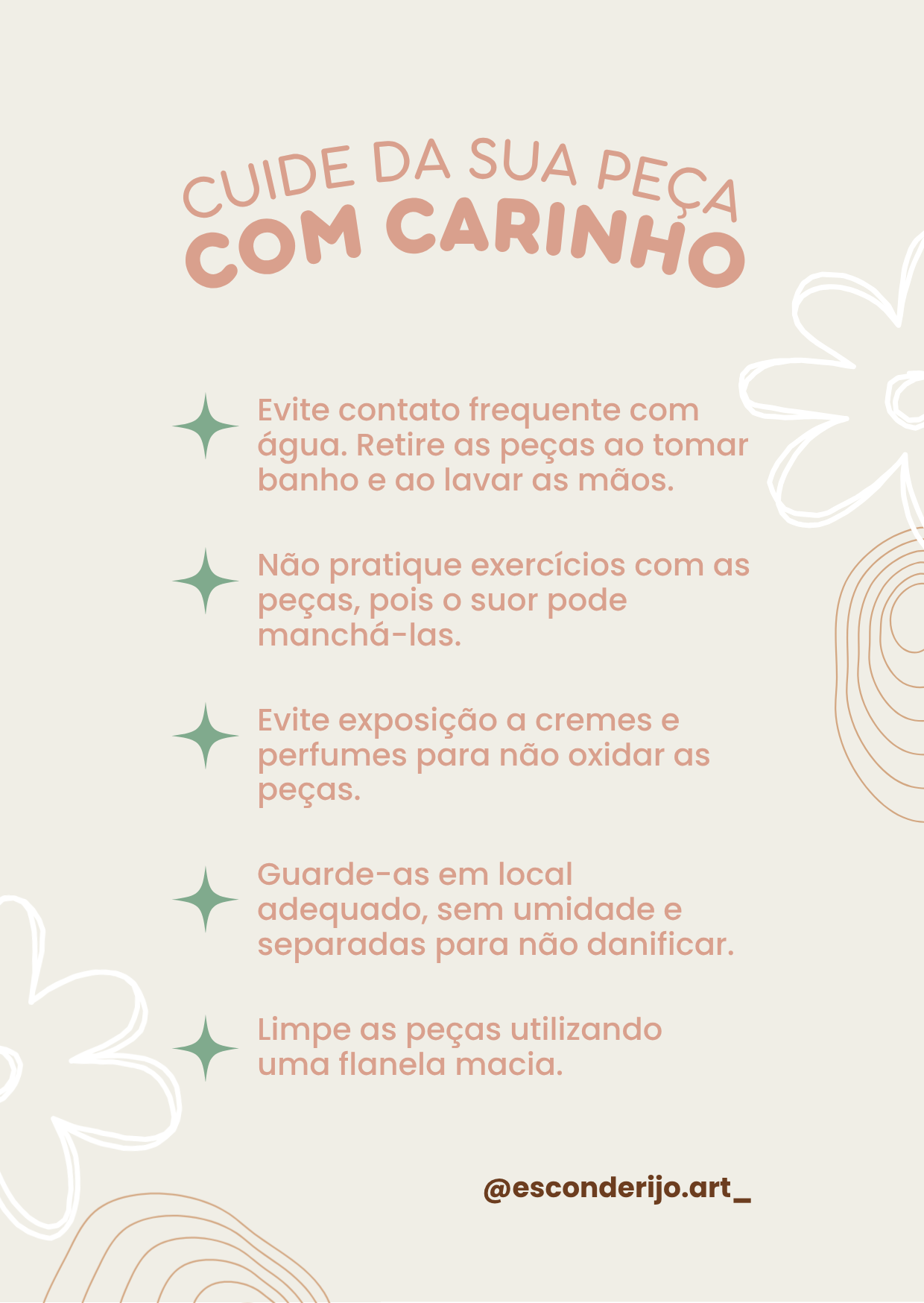 Cuidados com sua peça